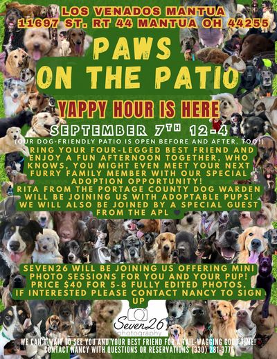 We’ve (Los venados mantua Ohio ) officially teamed up with the Portage County Dog Warden to bring you the ultimate “Paws on the Patio” Party, the perfect day out for you and your furry bestie! 🐾Bring your pup to meet new local furry friends and let them enjoy a day all about them!